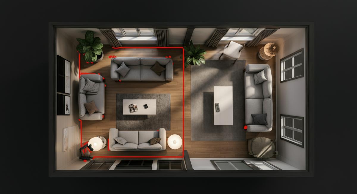 Описание проблемы: Без этого плана мебель могут поставить как угодно, перекрыв проходы, окна или даже розетки. И да, вы, скорее всего, тоже видели такие "дизайнерские" решения.