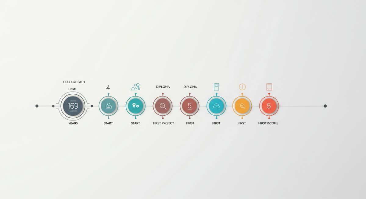 Для кого этот путь? Если вы не хотите ждать 4 года, а хотите как можно быстрее начать работать и зарабатывать, то интенсивный курс - ваш вариант. Вы можете закончить 9 классов, за лето и осень пройти курс, и уже к Новому году иметь профессию и первых клиентов. А дальше - решать, нужно ли вам высшее образование для дальнейшего роста. Наш каталог курсов построен именно по этому принципу - от быстрого старта к профессиональному росту.