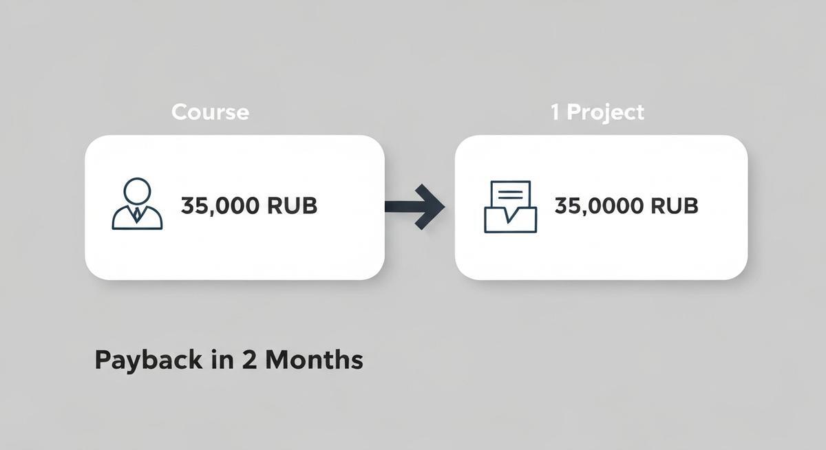 А теперь самое интересное - окупаемость. По нашему опыту, большинство студентов берут первый платный заказ уже на 6-8 неделе обучения.