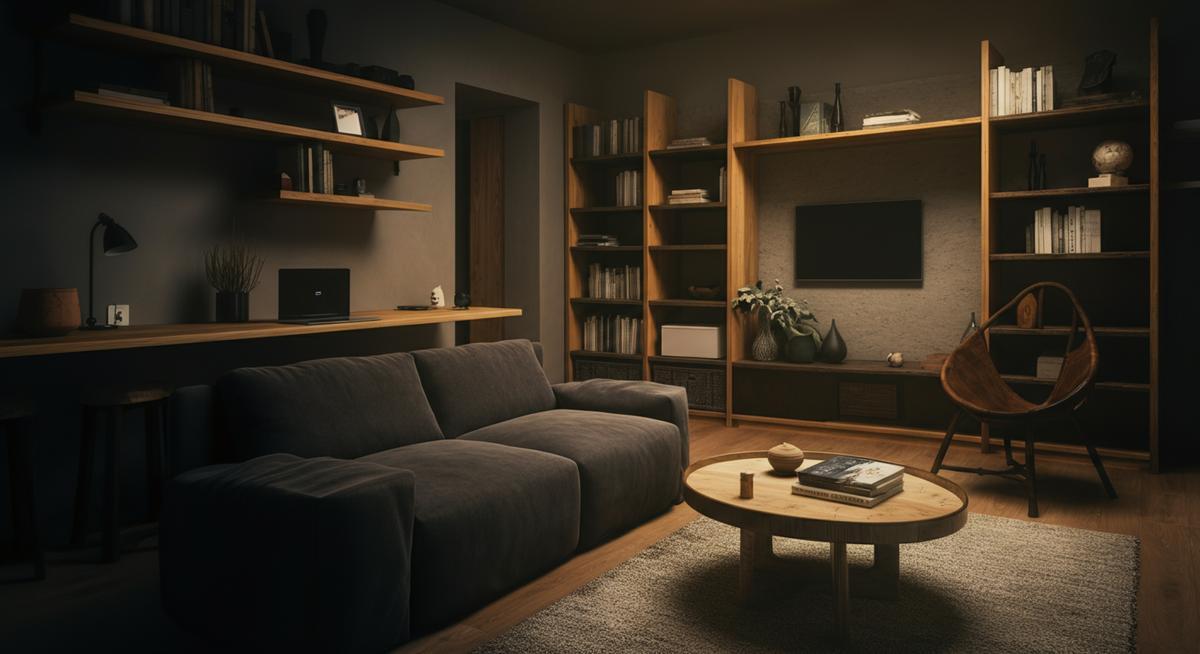 Три уровня света: Обязательно используйте общий (люстра), акцентный (подсветка картин, бра) и декоративный (торшеры, настольные лампы, LED-ленты) свет. Оптимально 4-6 источников на разных уровнях для гостиной 20м².
